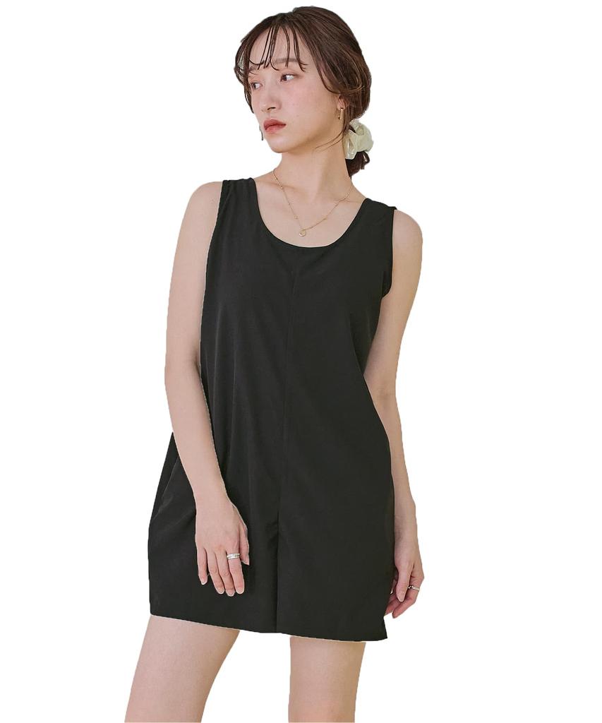 Seedless DAXM0429 Women's Simple Tank Top All-in-One Swimsuit, Size M, Black