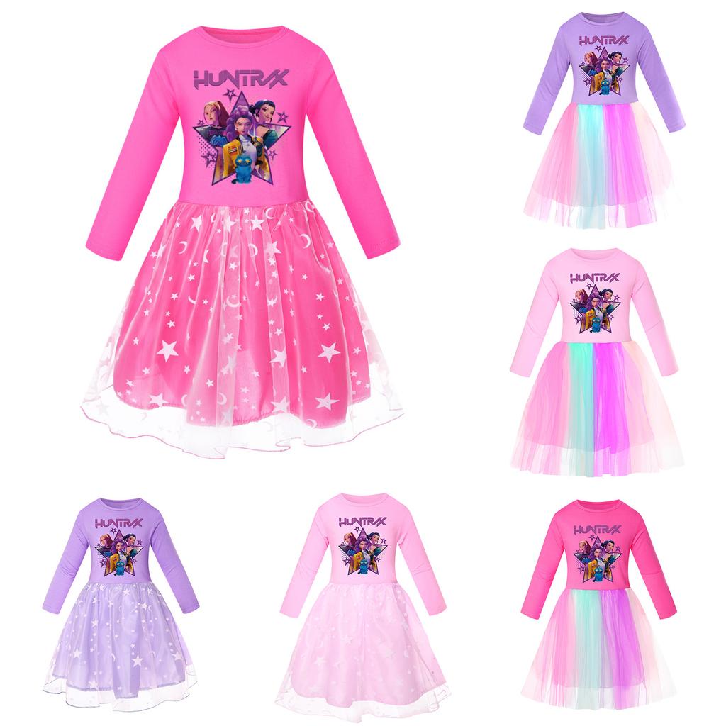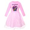 Girls' Star-Print Skirt Round-Neck Long-Sleeve Colorful Lace Patchwork Dress