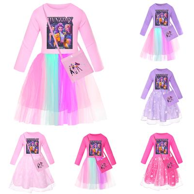Kids Girls Witch Glinda Print Mesh Rainbow Round Neck Casual Cotton Dress