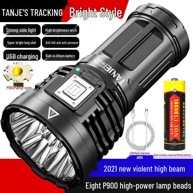 Ultra-Bright Rechargeable Outdoor Flashlight, Eight-Core, Multifunctional, Long-Range.