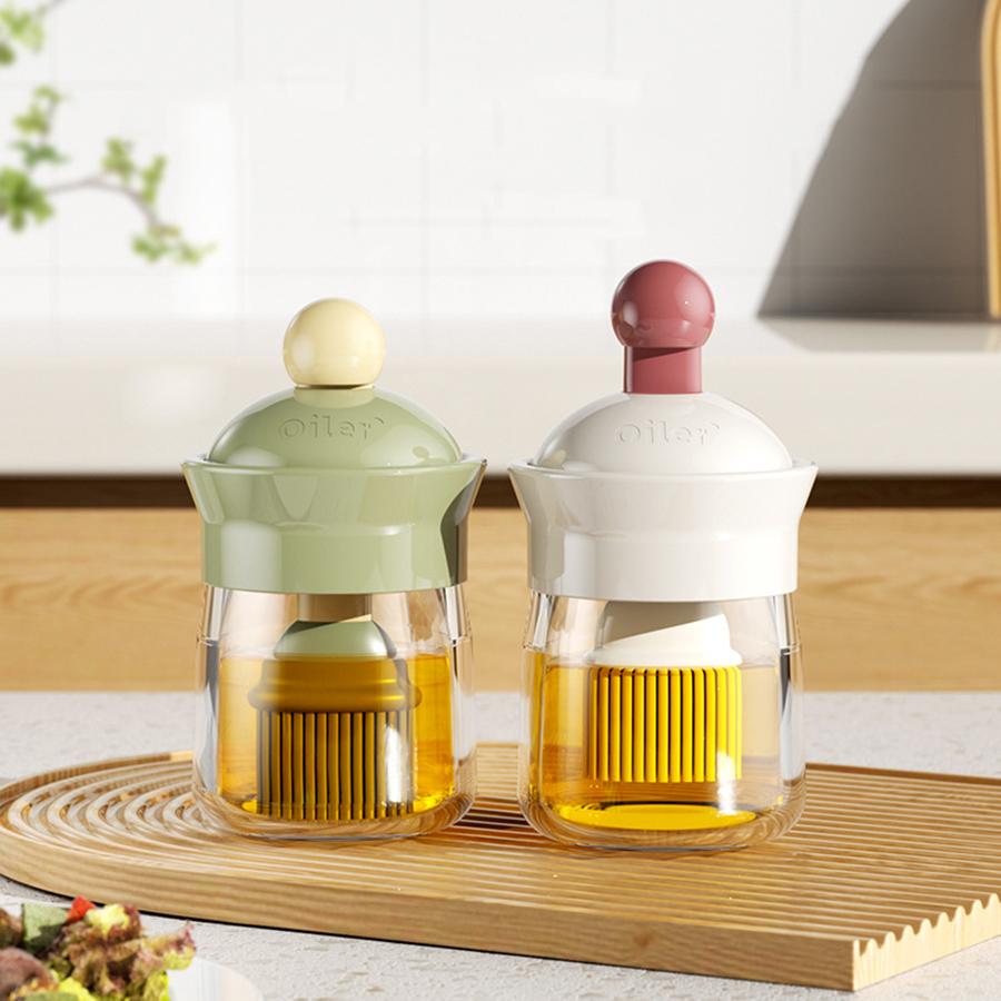 Practical 2-in-1 Oil Brush Bottle Oil Pot Sauce Vinegar Bottle Silicone Oil Brush Temperature Resistant Oil Bottle