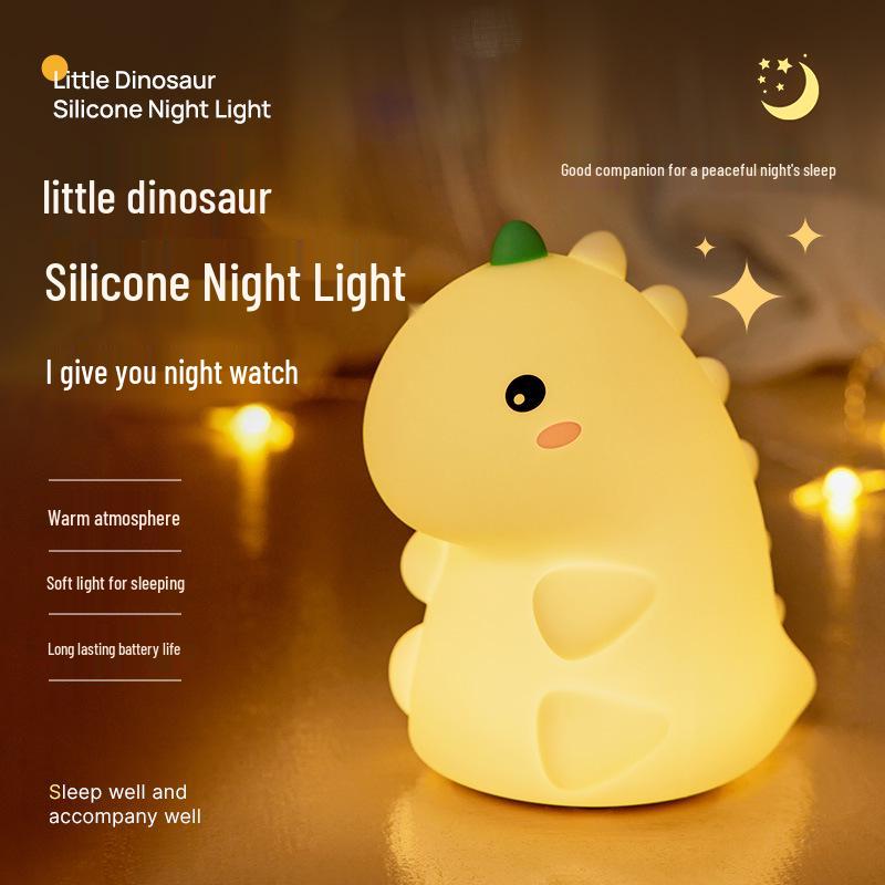Dinosaur Silicone Night Light: Creative USB Rechargeable Tap Light for Kids' Bedside