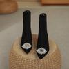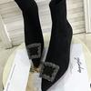 Small Short Boots 2025 New Women's Winter One-pedal Thin Leg Socks Boots Rhinestone Square Buckle Pointed Middle Heel Short Boots