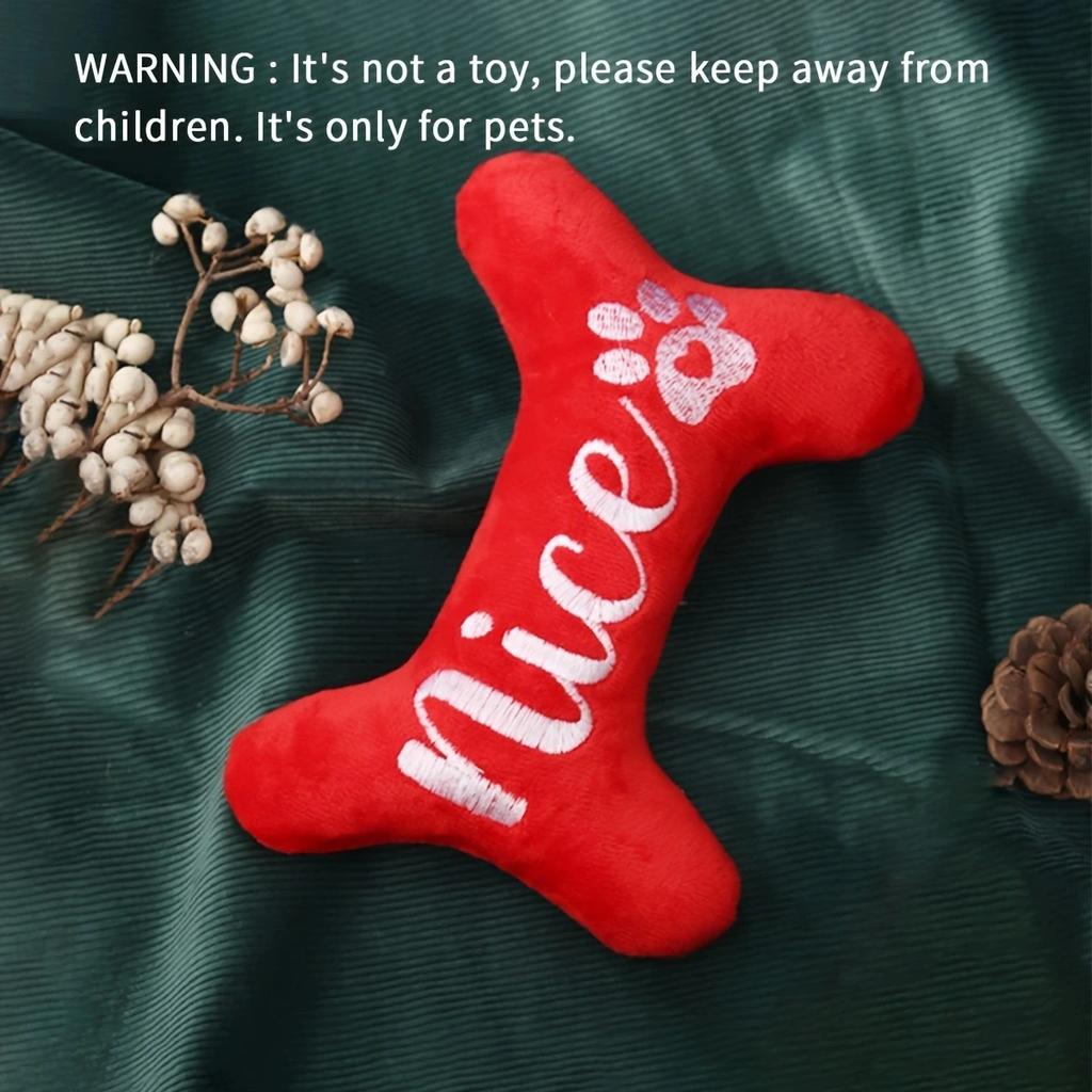 1pc Christmas Bones Design Pet Grinding Teeth Squeaky Plush Toy,Durable Chew Toy For Dog Interactive Supply