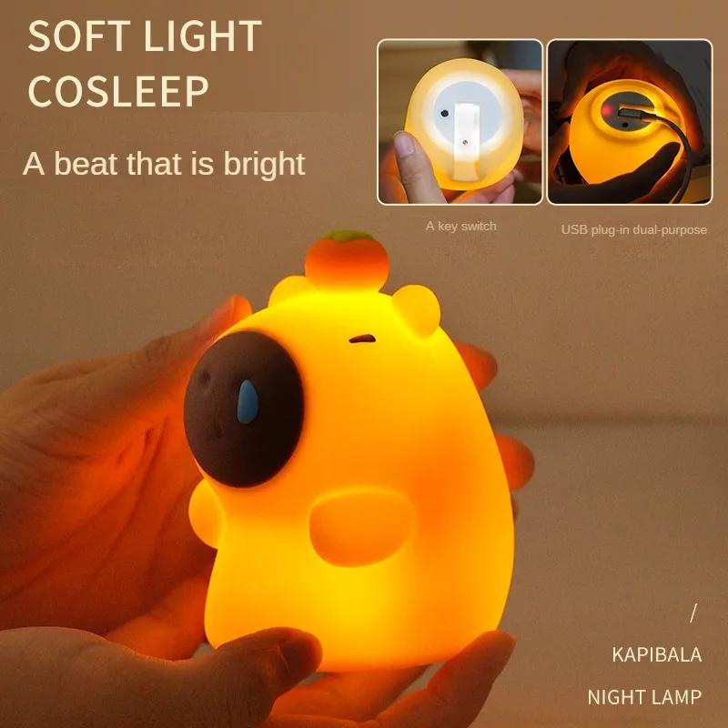 1-4PCS Kapybara Pat Night Light Cute Soft Silicone Lamp Rechargeable Bedroom Bedside Decorative Light for Kids Christmas Gift