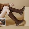 Fleece Shoes, Long Boots, New Versatile and Retro Boots for Women, Thick Mid-heel Boots