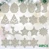 20Pcs Christmas Snowflake Decorations Glittering Tinsel Snowflakes Set For Tree Ceiling Party Decor White Ornaments