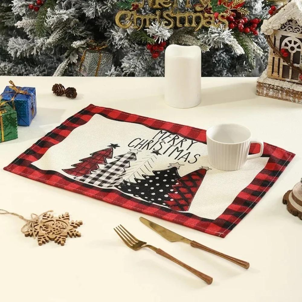 4PCS Christmas Table Placemats 30*45cm Christmas Trees Snowmen Print Dining Table Mats Xmas Party Table Pads Decoration