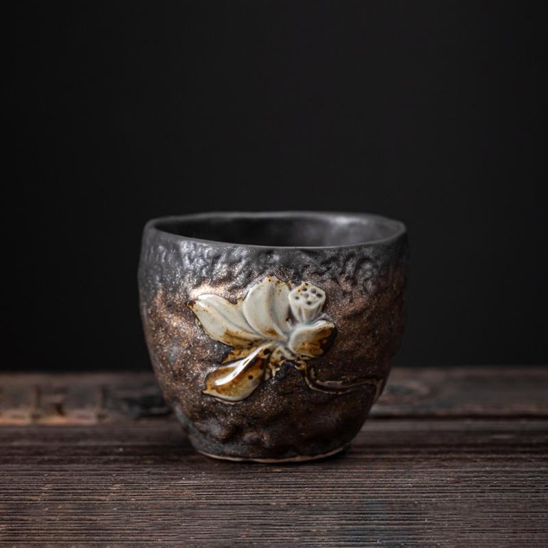 Gilt Rough Pottery Embossed Master Cup Handmade Tea Cup Vintage Iron Glaze Small Tea Cup Kung Fu Tea Set
