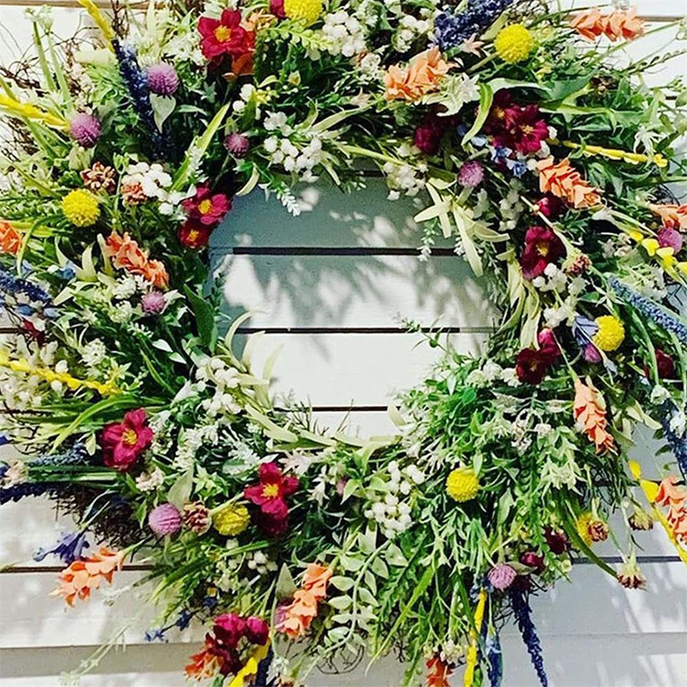 Color Artificial Wreath Hanging Decor Spring/Summer Front Door Wreath Simulation Flower Wreath Decoration Windows Decoration FU