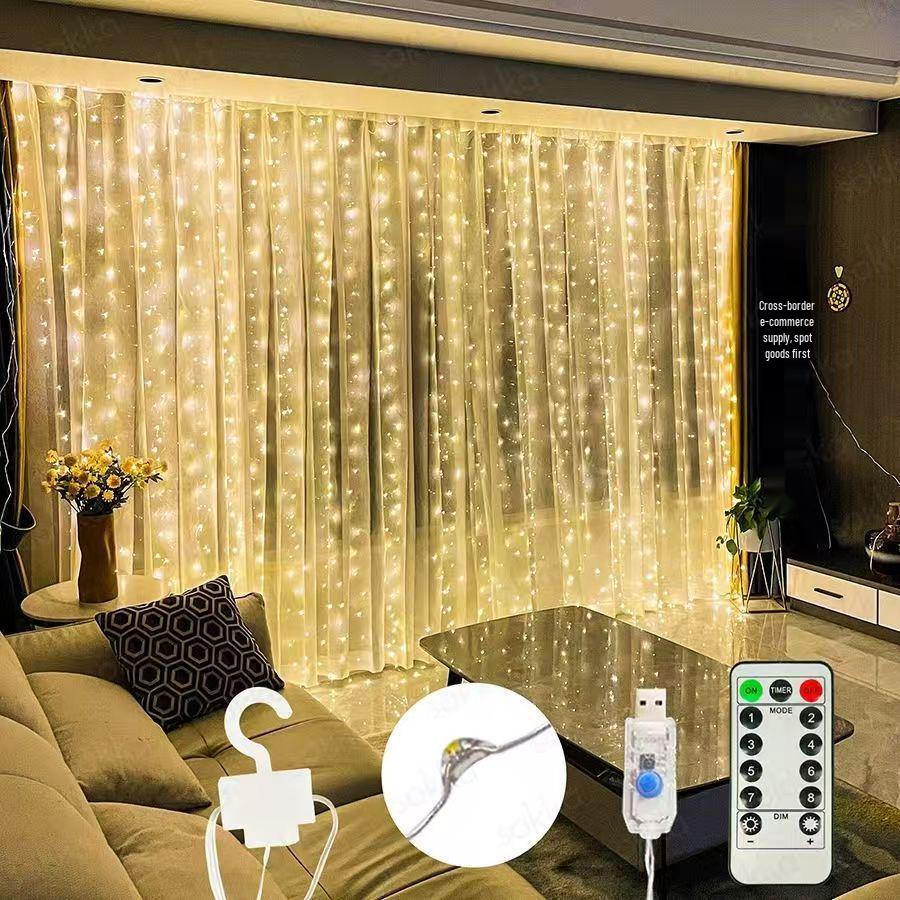 Remote-Control USB LED Curtain Lights - Copper Wire, Ideal for Live Broadcasts, Decorative Backdrops, Living Room Ambiance & Waterfall Effects.