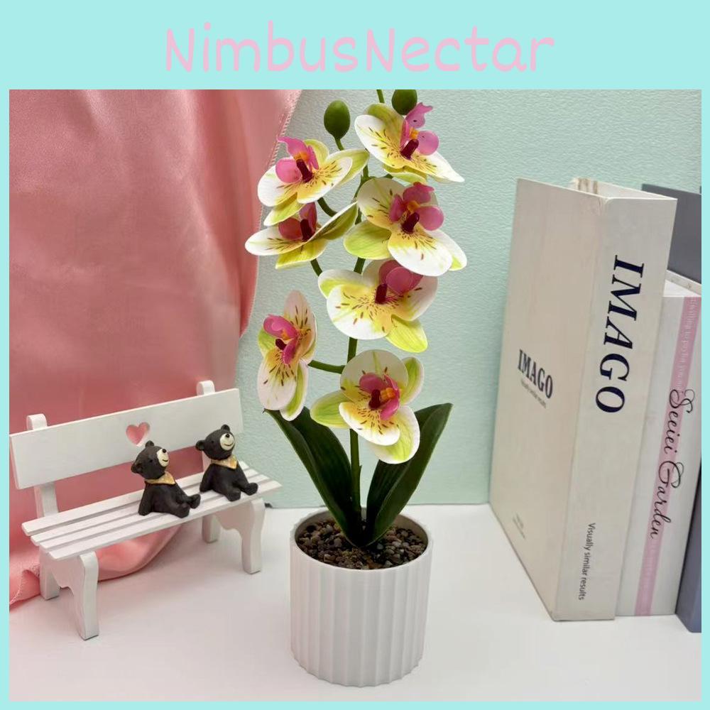 This artificial butterfly orchid bonsai features a 7-flower design crafted from durable materials,Its vibrant purple, white, orange, and green hues add a natural touch. Ideal for home decor, wedding arrangements, outdoor displays, or photography props. Wipe with a damp cloth for maintenance.