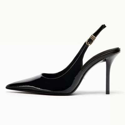 Zara Pu Elegant Open-Toe High Heel Patent Effect Pointed Toe Strap Sandals 10.5Cm Women Sandals Black 13307510-38