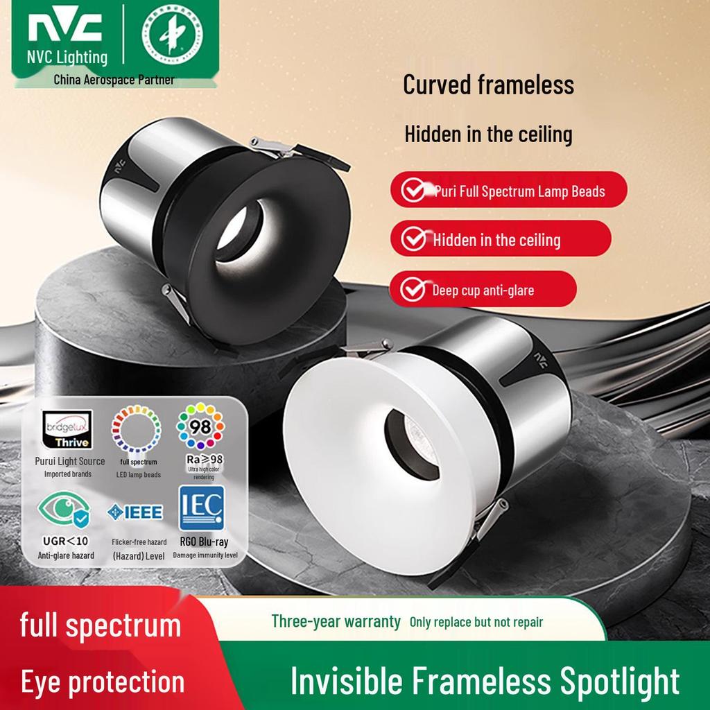 NVC Lighting Frameless LED Spotlight - Anti-Glare, Full Spectrum, Wall Washer, Recessed for Living Room