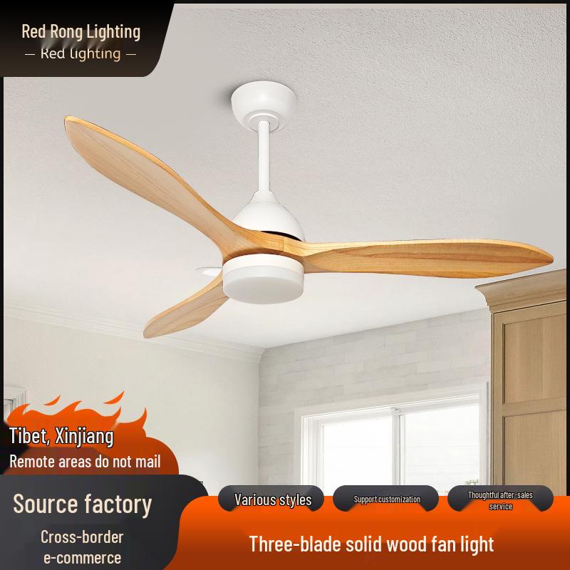 American Retro Ceiling Fan Light with Solid Wood Blades - Industrial Style LED for Restaurants
