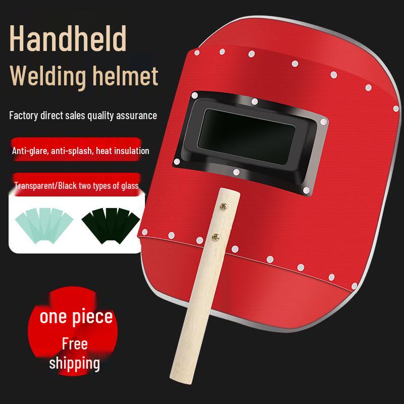Red Handheld Steel Welding Face Shield - Lightweight Anti-Scald Protection Mask for Arc Welding
