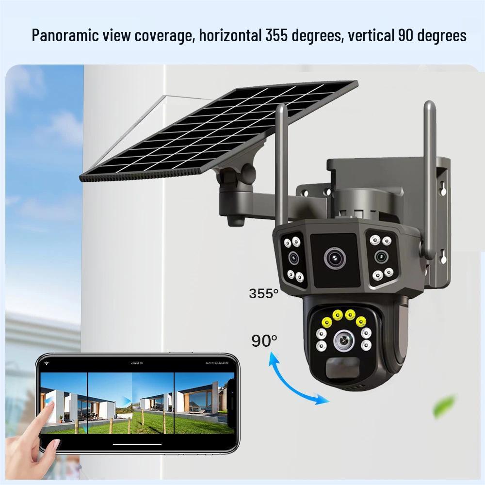 Solar-Powered Outdoor Three-Screen HD Night Vision Camera for Remote Orchard Monitoring