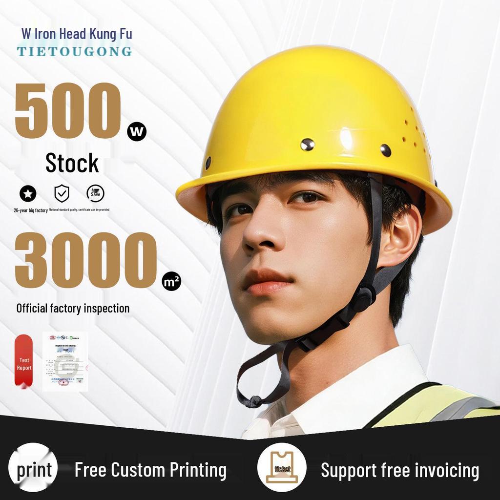 Iron Head Kung Fu Breathable Anti-Smash Safety Helmet with Steel Nail and Printed Logo for Construction Site.