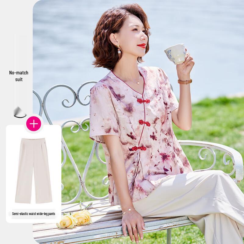 Past Moms' New Chinese Style Floral Summer Set