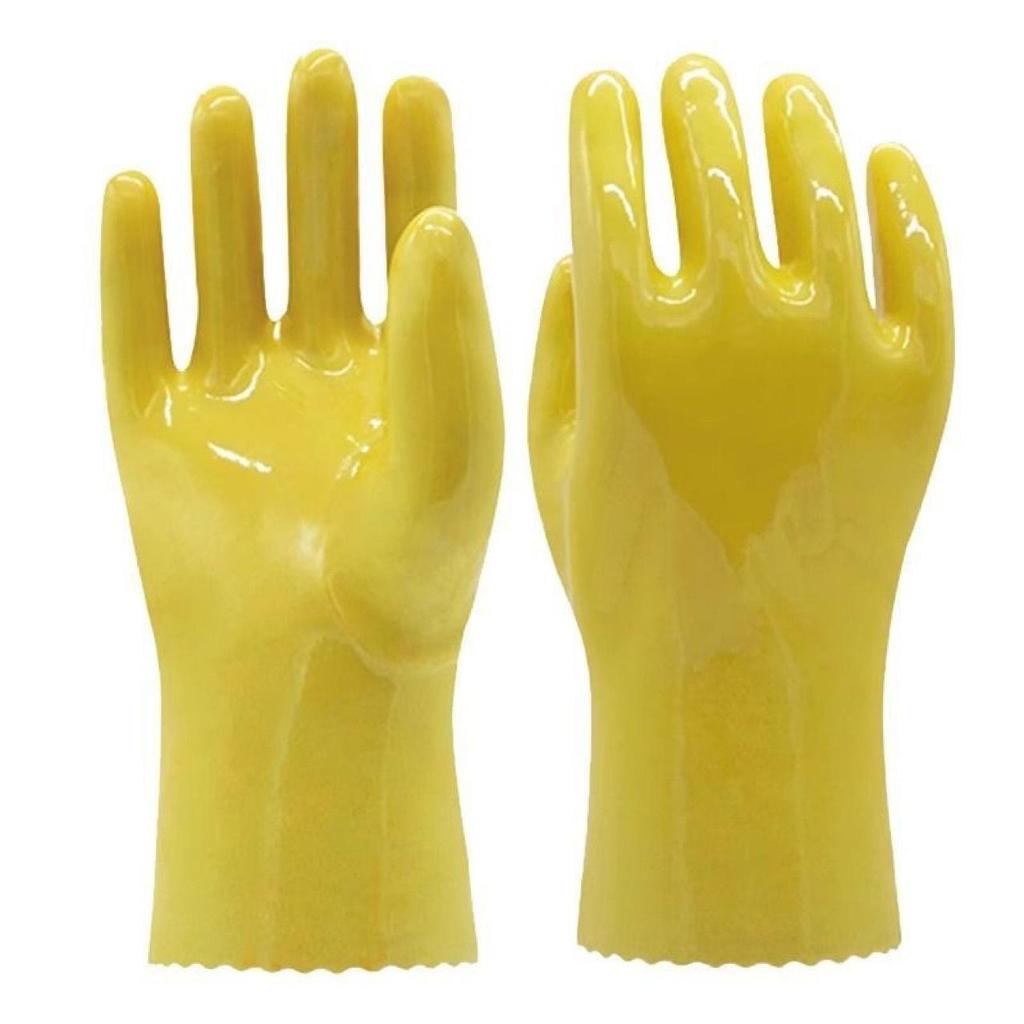 PVC Oil-Resistant Chemical Protective Gloves, Acid & Alkali Resistant, Yellow Cotton Knit Dipped for Labor Protection.