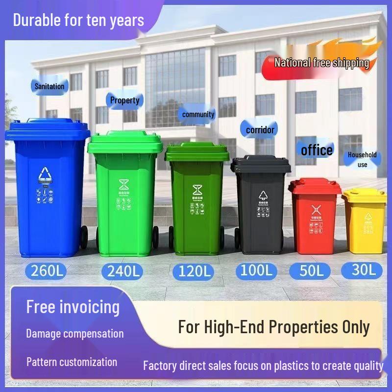 Commercial 240L Outdoor Thickened Plastic Trash Bin with Lid