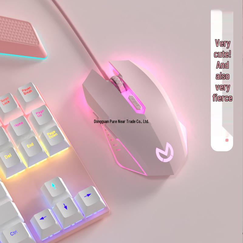 Cherry Blossom Pink Silent Wired Mouse for Women's Home Office and Gaming