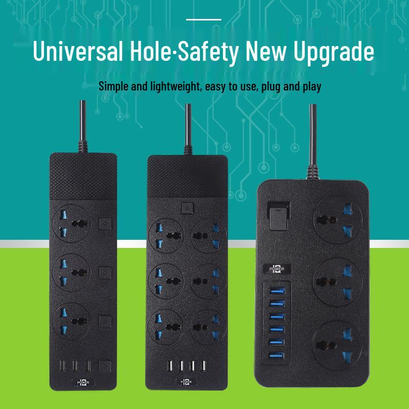 Multinational Power Strip: UK, EU, US Sockets with USB Converter & HK Plug Extension Cord