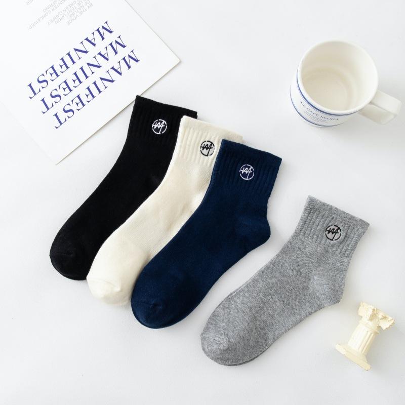 Men's Spring and Autumn Pure Cotton Solid Color Embroidered Sports Short Socks