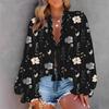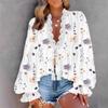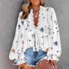 2025 Spring and Autumn New Women's V-neck Lace Spliced Printed Shirt