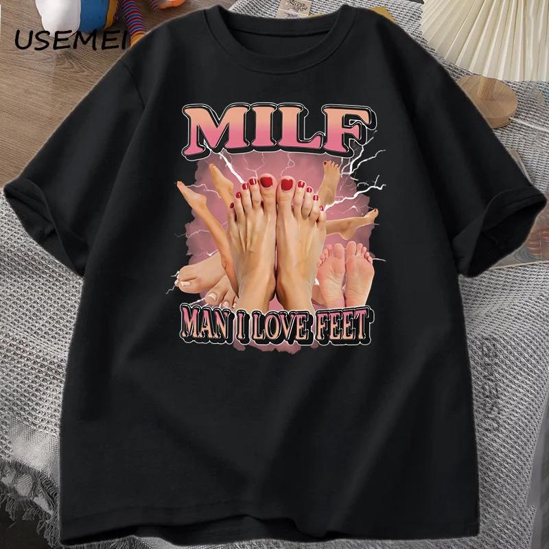 MILF Man I Love FeesT T-shirt, Humorous and Interesting Men's Round-neck T-shirt, Loose, Casual Clothing