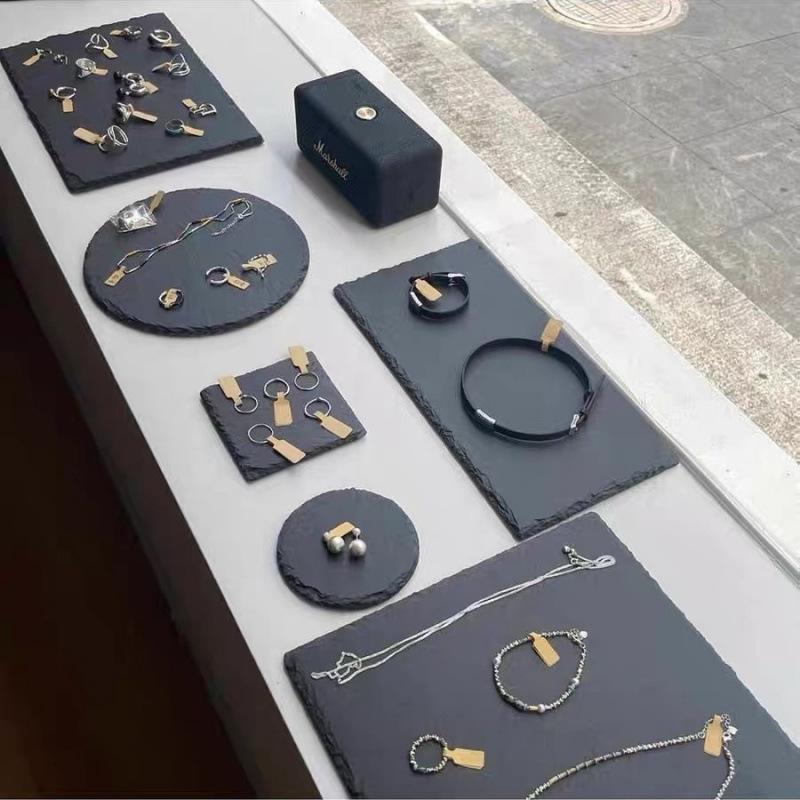 Small Black Natural Stone Jewelry Tray: Creative Background Ornament for Photography