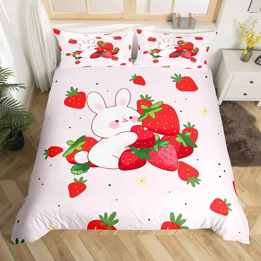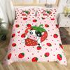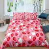 3Pcs Full Size Sweet Strawberry Bedding Set Duvet Cover for Kids Children Teens Comforter Cover Bed Room Decor Pink Quilt Cover