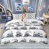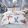 Homewish Cartoon Aircraft Train Duvet Cover Set for Children 2pcs/3pcs, Airplane Steam Engine Bedding, Transportation Bed Set