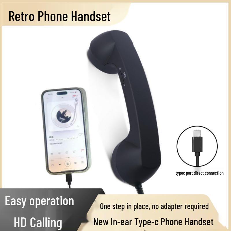Retro Telephone Style Type-C Plug Mobile Headset with External Microphone
