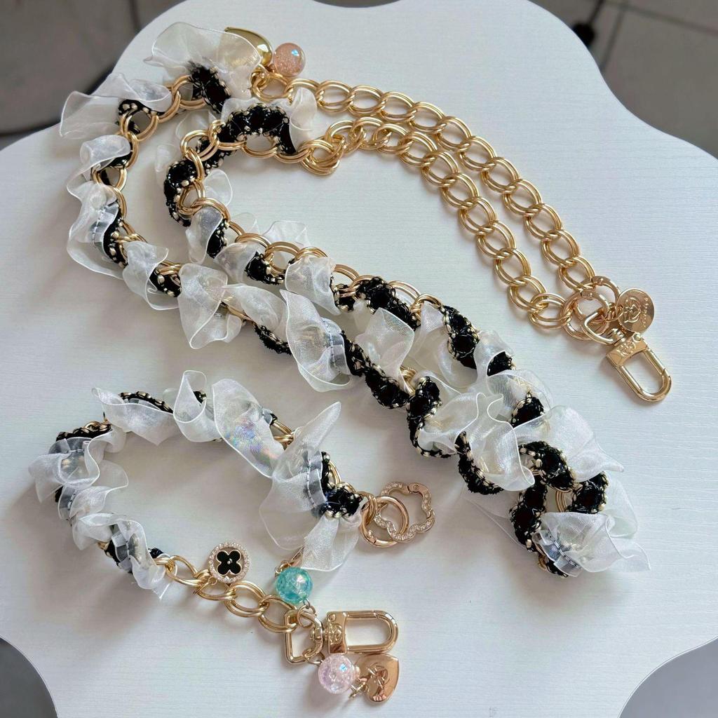 Handmade Woven Chinese-Style Double Layer Bracelet with Retro Phone Lanyard & High-End Plated Gasket