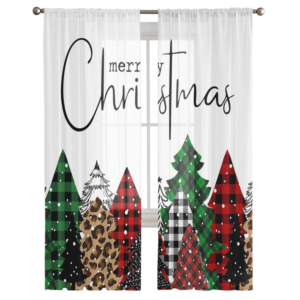 Christmas Tree Leopard Snowflake Living Room Transparent Tulle Window Curtain Bedroom Kitchen Decor Veil Drapes Curtains