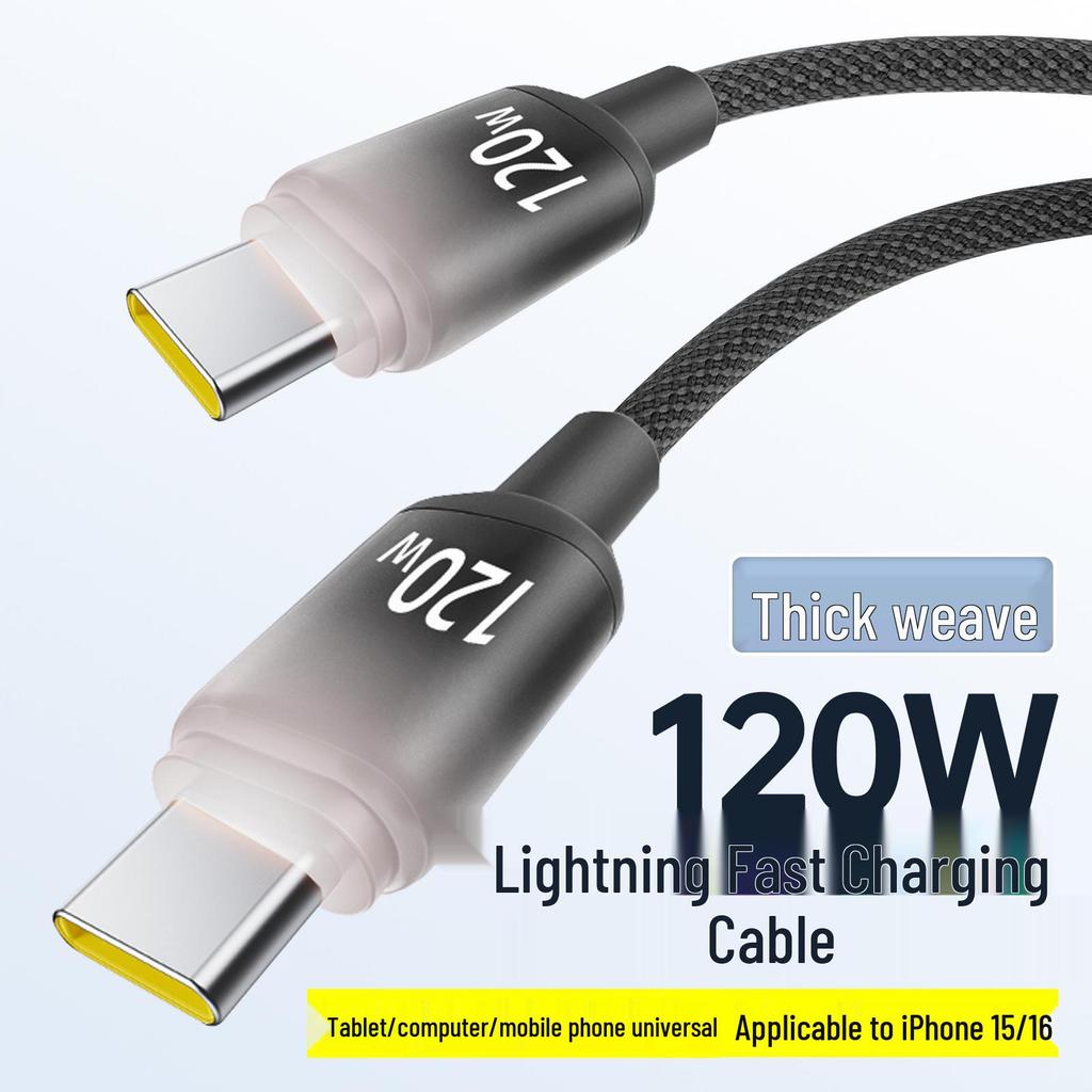 120W Dual Type-C Fast Charging Cable 6A for Apple 15/16, Huawei Laptops, and Mobile Phones