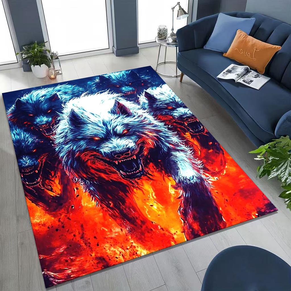 Norse Mythology Fenrir Wolf Beast Cartoon Rug for Bedroom Living Room Sofa Home Doormat Decor, Large Kid Play Non-slip Floor Mat
