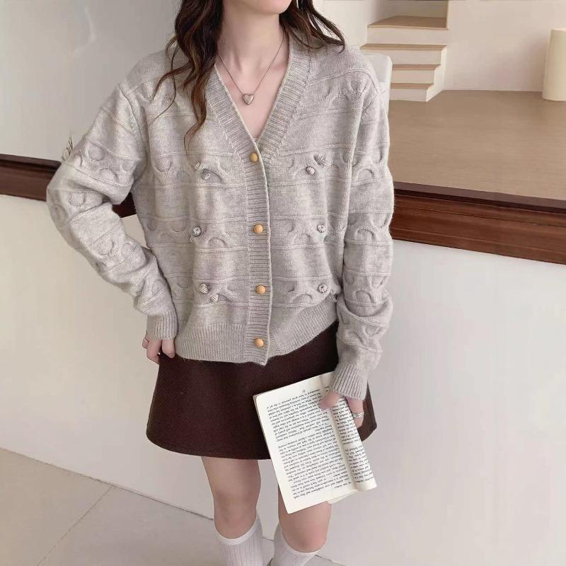 Casual Versatile Loose Short Sweater Jacket Women's Spring and Autumn New Fashion Loose Knitted Cardigan Top Trendy