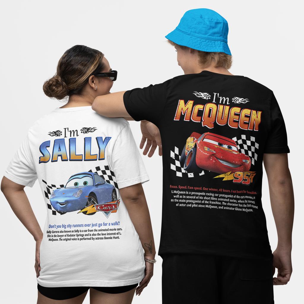 Men Women Lightning Car Mcqueen Sally Couple T-Shirt Merch Vintage Pure Cotton T Shirt Tops Christmas Gifts