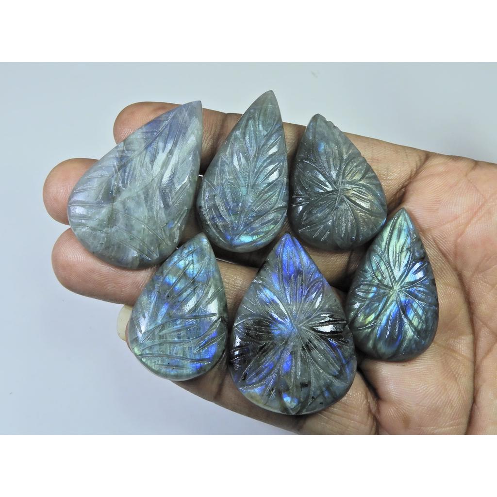 279Cts. Natural Labradorite Carving Pear Cabochon Loose Gemstone 6Pcs Lot LL-1037