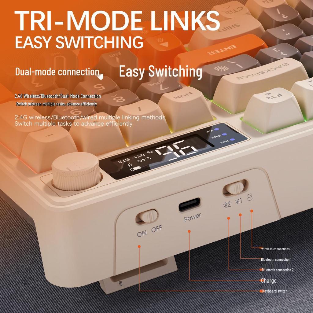 Free Wolf M96 Dual-Mode Wireless Bluetooth Keyboard: PBT Spherical Keycaps, Display Screen, Knob Control, Mechanical Feel, Gaming-Ready.