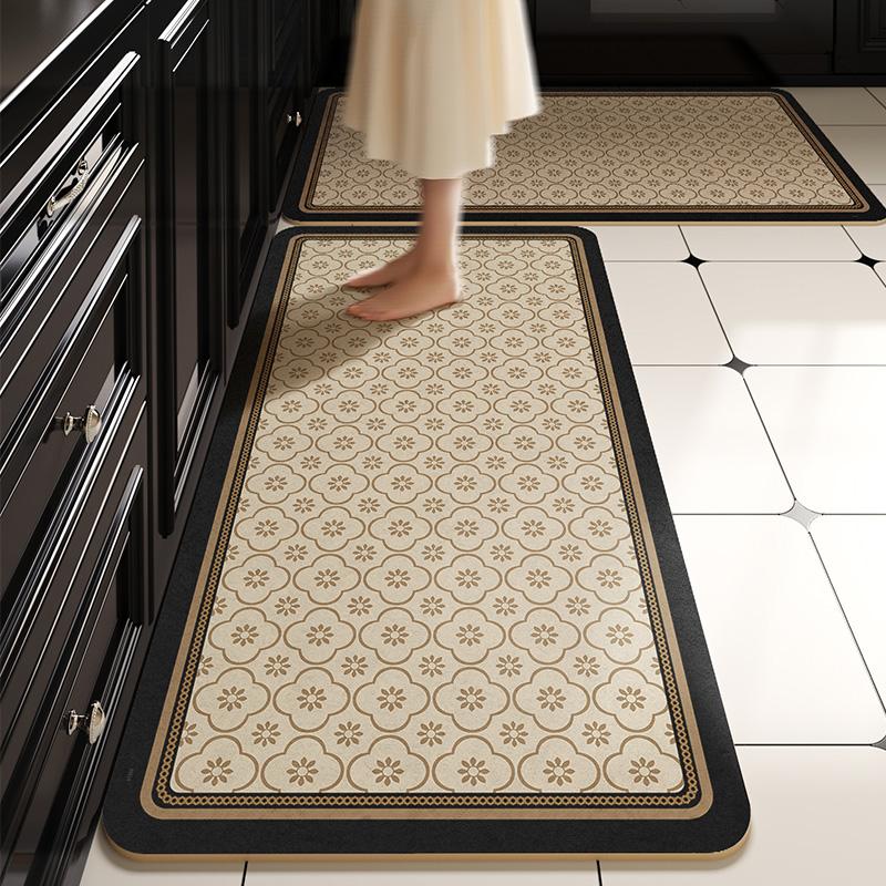 Pvc Kitchen Floor Mat Waterproof Non-Slip Carpet Vinyl Leather Rug Retro Home Decoration Oil-Proof Long Foot Mats Alfombra