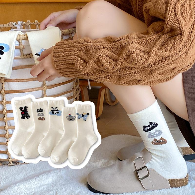 Cashmere Puppy Socks for Women, Thick, Warm, Trendy and Sweet Wool Socks, Cute Cartoon Mid-calf Socks