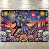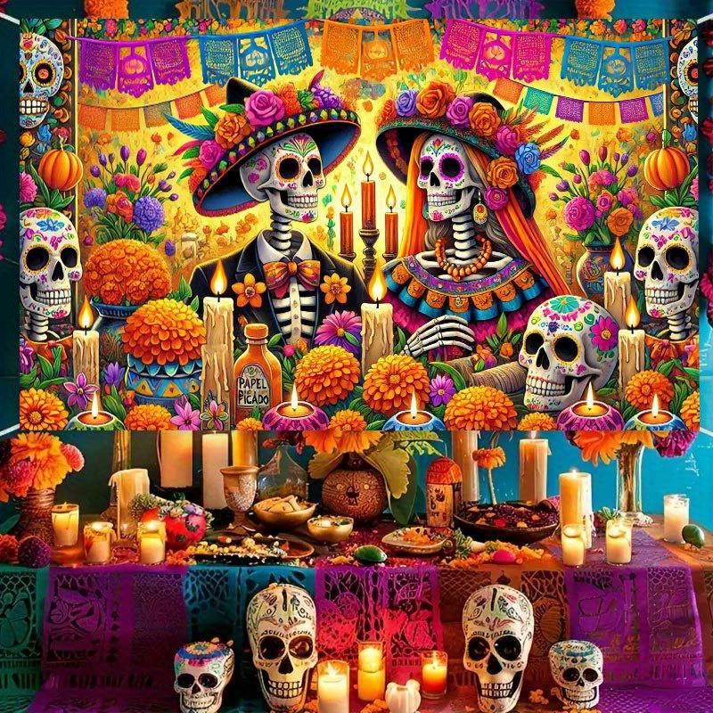 Day of the Dead Tapestry Celebration Traditional Mexican Attire Vibrant Skeletons Perfect for Parties and Holiday Gifts