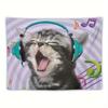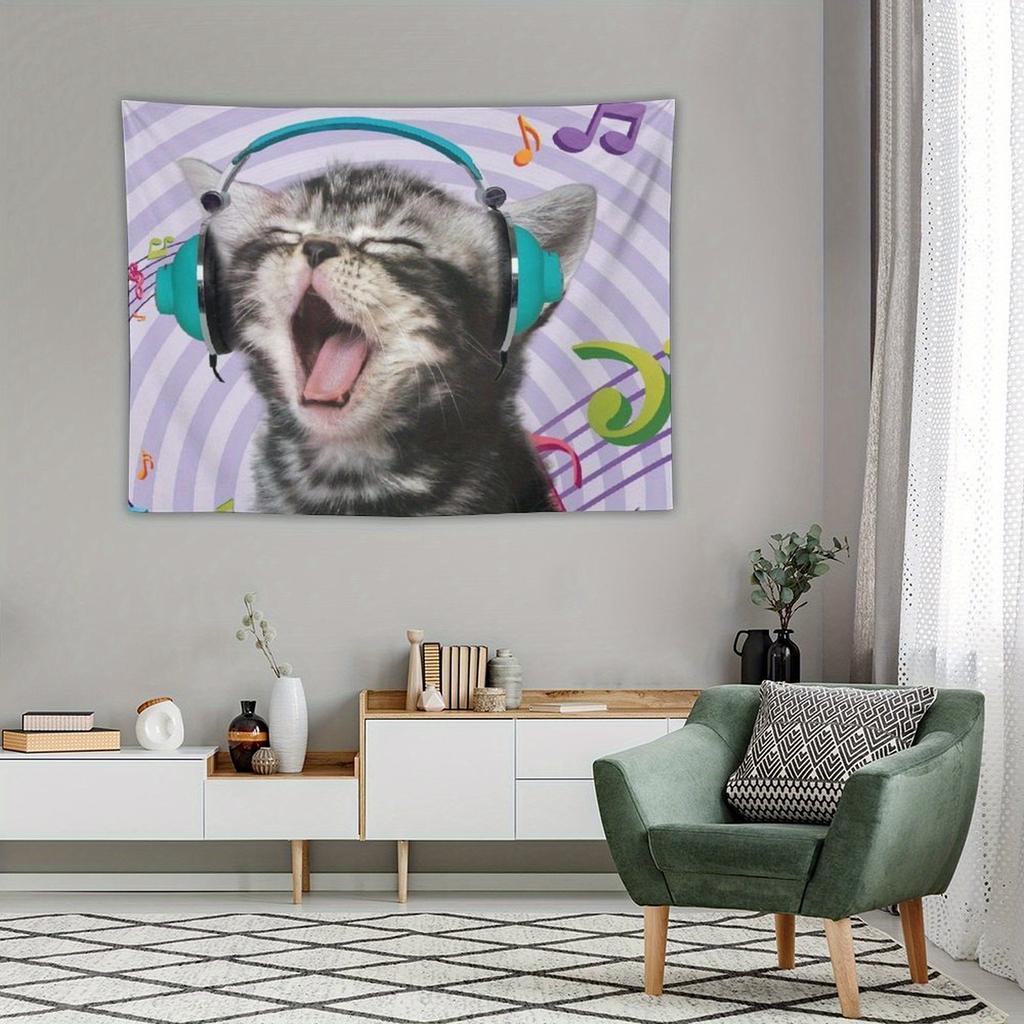 Whimsical Cat Listening To Headphones Kitten Design Tapestry Room Decoration Home Decor Bedroom Wall Hanging Fabric