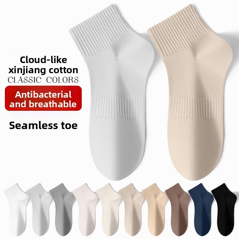 Male Spring and Summer Solid Color Vertical Bar Movement Antibacterial Breathable Non Slip Short Tube Cotton Socks