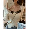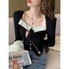 Square Neck Color Matching Bubble Sleeve Pullover Sweater Women's Autumn and Winter Temperament Celebrity Slim-fitting Chic Bottoming Knitted Sweater