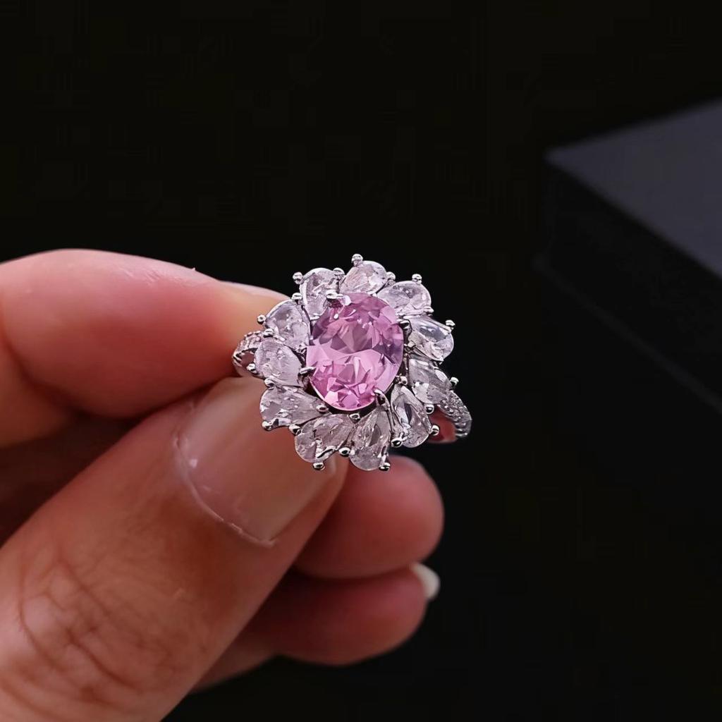 Fashion Coconut Round Papalacha Pink Diamond Ring Women'S Light Pink Treasure Flower Women'S Ring High Carbon Full Diamond Ring