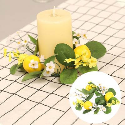 Lemon Flower Wreath Candle Ring Artificial Leaves Spring Greenery Garland Pillar Candle Home Wedding Party Table Centerpiece Decoration